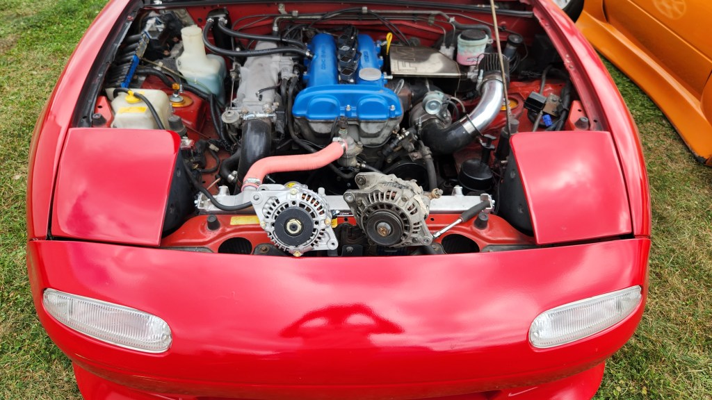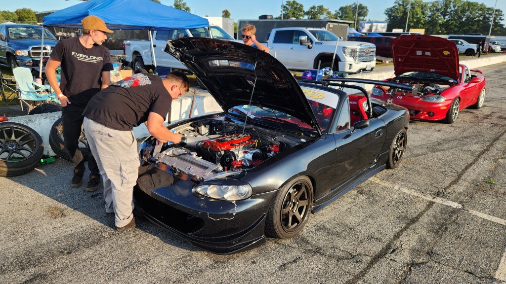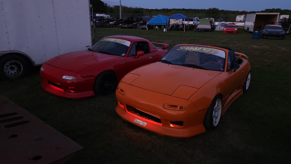 My friend Jordan has an super cool NB Miata which has a bored up 1.9 liter ITB engine and now it’s equipped with a Rotrex C30-74 supercharger! Made possible by a custom intake plenum mated to the ITB’s designed by a company called Hummelink Modifications. They make a lot of really cool Miata focused products and I highly recommend you check them out I personally run their Toyota coil on plug conversion kit! Jordan also had one of those electric scooters and he let me and Tyler take it for a test ride, safe to say I definitely want one especially since it seemed like everyone there this weekend was using them to get around the pits.
