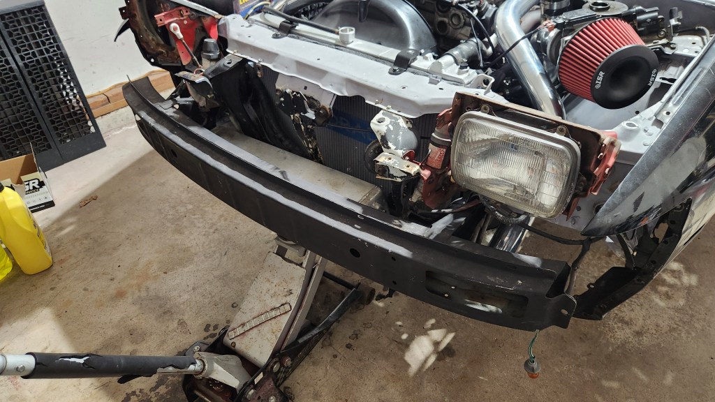 Also tried to mount up the intercooler but I’m unfortunately going to need to chop up the reinforcement. After some research it seems most people do end up needing to modify it but most remove it altogether. For me it’ll give peace of mind that it’s still there even if it’s a little cut up. Speaking of cut up I was able to salvage my headlight retaining ring that was barely hanging on to my rotted bucket.