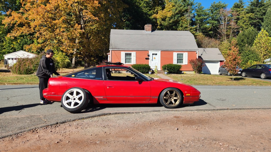 With the deed done it was time to head back to my place. We hit the highway and the whole time Wei was behind me in his 240 I couldn’t help but feeling stupid for not getting mine going for this weekend. My biggest hangup was waiting on another Faction order with some essential pieces I forgot to add last time I ordered. It arrived on Friday afternoon but I honestly didn’t have any motivation to try and get everything done for the next day. Once we all arrived at my house we got to work trying to make the TE’s fit. They are GTR spec so unfortunately for Wei without a camber arm or a serious pull they weren’t going to clear today. We still took the opportunity with the TE’s all around to put my URAS skirts and rear bumper half on to see how it would look.