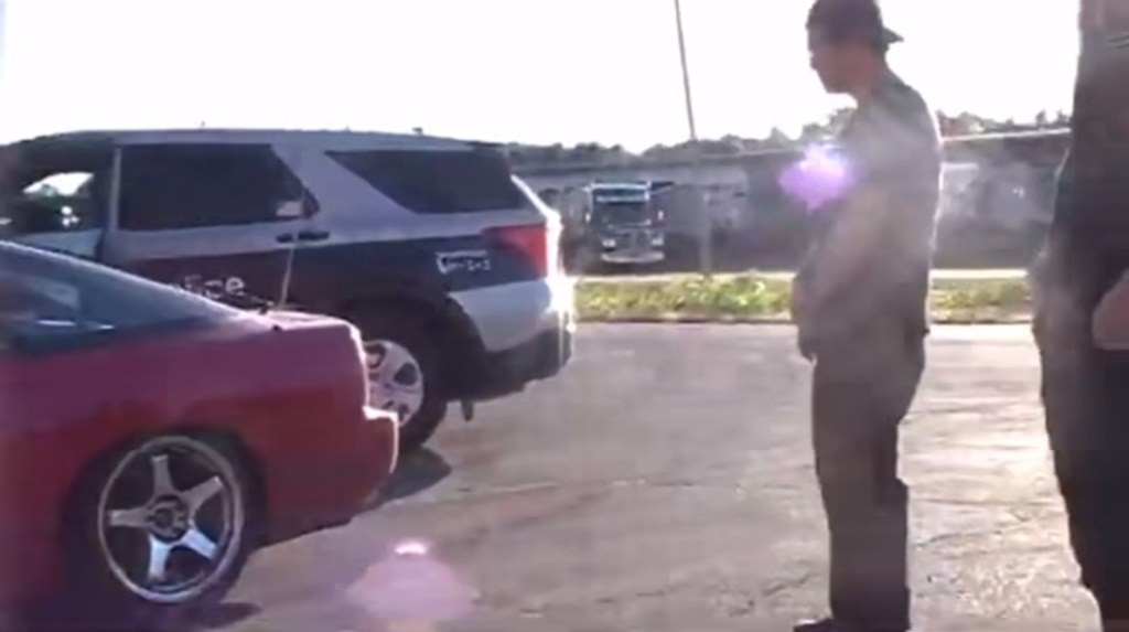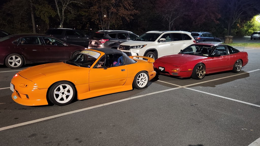 Testing phase number one didn’t go as planned… Wei’s wheel was still hitting the control arm and after that run you just saw I had a flat tire. Limped it home without damaging the wheel thankfully. Decided I was going to be media for the next session even though I had more tires. We ran into town to a local deli and got some sandwiches for lunch and then got back to working on Wei’s car. Somehow the starter signal wire on Wei’s car disappeared from somewhere in between the street spot and my house. Tyler rigged up a temporary fix bypassing the relay and the car fires right up once again. Wei put on a 15mm bolt on spacer to see if the rubbing would be fixed and then we headed back out again for more testing. Testing was going very good for about 30 minutes, then we had a visit.